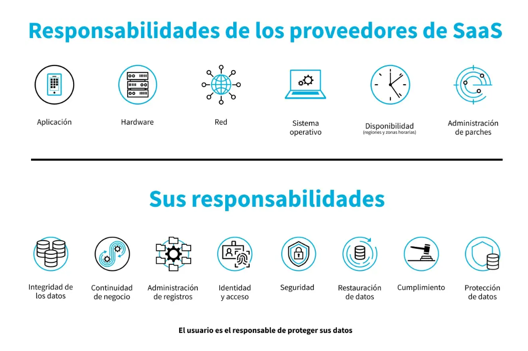 - SharePoint. El backup se aplica a colecciones de sitios, listas, bibliotecas de documentos, tipos de contenidos y columnas del sitio, permisos, personalización, páginas y subsitios.